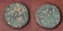 | Description / विवरण | Descrpn./Obv Recumbent bull facing left, wearing jhula (saddle cloth). Above, legend in Sarada script Sri Samantadeva (in cursive letters, mostly truncated and seen partially or off the flan). Descrpn./Rev Rider with lance on caparisoned horse facing right. |