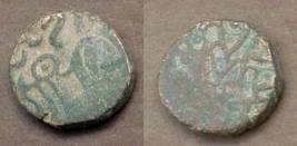 | Description / विवरण | Descrpn./Obv Recumbent bull facing left, wearing jhula (saddle cloth). Above, legend in Sarada script Sri Samantadeva (in cursive letters, mostly truncated and seen partially or off the flan). Descrpn./Rev Rider with lance on caparisoned horse facing right. |