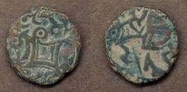 | Description / विवरण | Descrpn./Obv Recumbent bull facing left, wearing jhula (saddle cloth). Above, legend in Sarada script Sri Samantadeva (in cursive letters, mostly truncated and seen partially or off the flan). Descrpn./Rev Rider with lance on caparisoned horse facing right. |