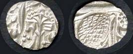 | Description / विवरण | Descrpn./Obv In the centre, a chhatra with Sa and Ta in Gurumukhi script on the left and right of its shaft; traces of the Persian legend seen on the obverse of the bigger Nanakshahi coins of Amritsar mint are also seen. Descrpn./Rev Big peepal leaf and traces of the Persian legend seen on the reverse of the bigger Nanakshahi coins of Amiritsar mint - Shri Amritsarjiv zarb [VS Year] Takht maimanat julus manus Akal Bakht. Especially traces of alif of Akal and te of Takht and maimanat are seen |