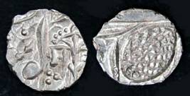 | Description / विवरण | Descrpn./Obv In the centre, a chhatra with Sa and Ta in Gurumukhi script on the left and right of its shaft; traces of the Persian legend seen on the obverse of the bigger Nanakshahi coins of Amritsar mint are also seen. Descrpn./Rev Big peepal leaf and traces of the Persian legend seen on the reverse of the bigger Nanakshahi coins of Amiritsar mint - Shri Amritsarjiv zarb [VS Year] Takht maimanat julus manus Akal Bakht. Especially traces of alif of Akal and te of Takht and maimanat are seen |