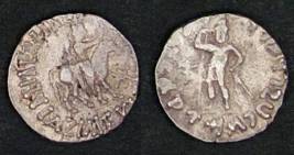 | Description / विवरण | Descrpn./Obv King holding whip, mounted on horse walking right; Greek legend, Basileos Basileon Megalou / Azilisou. Descrpn./Rev One dioscuros standing facing, holding long upright spear; Kharoshthi legend, Maharajasa Rajadirajasa Mahatasa / Ayilishasa |