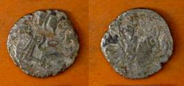 | Description / विवरण | Descrpn./Obv Recumbent bull facing left, wearing jhula (saddle cloth), with trisula (trident) symbol on rump. Above, legend in Sarada script Sri Samantadeva . Descrpn./Rev Rider with lance on caparisoned horse facing right. On left, Sarada letter bhi and on right, Sarada letter ta |