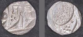 | Description / विवरण | Descrpn./Obv In the centre, a chhatra with Sa and Ta in Gurumukhi script on the left and right of its shaft; traces of the Persian legend seen on the obverse of the bigger Nanakshahi coins of Amritsar mint are also seen. Descrpn./Rev Big peepal leaf and traces of the Persian legend seen on the reverse of the bigger Nanakshahi coins of Amiritsar mint - Shri Amritsarjiv zarb [VS Year] Takht maimanat julus manus Akal Bakht. Especially traces of alif of Akal and te of Takht and maimanat are seen |