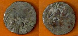 | Description / विवरण | Descrpn./Obv Recumbent bull facing left, wearing jhula (saddle cloth), with trisula (trident) symbol on rump. Above, legend in Sarada script Sri Samantadeva . Descrpn./Rev Rider with lance on caparisoned horse facing right. On left, Sarada letter bhi and on right, Sarada letter ta |