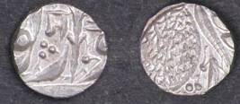 | Description / विवरण | Descrpn./Obv In the centre, a chhatra with Sa and Ta in Gurumukhi script on the left and right of its shaft; traces of the Persian legend seen on the obverse of the bigger Nanakshahi coins of Amritsar mint are also seen. Descrpn./Rev Big peepal leaf and traces of the Persian legend seen on the reverse of the bigger Nanakshahi coins of Amiritsar mint - Shri Amritsarjiv zarb [VS Year] Takht maimanat julus manus Akal Bakht. Especially traces of alif of Akal and te of Takht and maimanat are seen |