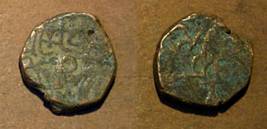 | Description / विवरण | Descrpn./Obv Recumbent bull facing left, wearing jhula (saddle cloth). Above, legend in Sarada script Sri Samantadeva (in cursive letters, mostly truncated and seen partially or off the flan). Descrpn./Rev Rider with lance on caparisoned horse facing right. |
