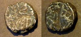 | Description / विवरण | Descrpn./Obv Recumbent bull facing left, wearing jhula (saddle cloth). Above, legend in Sarada script Sri Samantadeva (in cursive letters, mostly truncated and seen partially or off the flan). Descrpn./Rev Rider with lance on caparisoned horse facing right. |