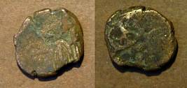 | Description / विवरण | Descrpn./Obv Recumbent bull facing left, wearing jhula (saddle cloth). Above, legend in Sarada script Sri Samantadeva (in cursive letters, mostly truncated and seen partially or off the flan). Descrpn./Rev Rider with lance on caparisoned horse facing right. |