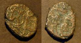 | Description / विवरण | Descrpn./Obv Recumbent bull facing left, wearing jhula (saddle cloth). Above, legend in Sarada script Sri Samantadeva (in cursive letters, mostly truncated and seen partially or off the flan). Descrpn./Rev Rider with lance on caparisoned horse facing right. |