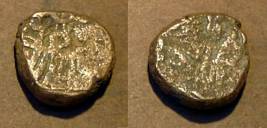 | Description / विवरण | Descrpn./Obv Recumbent bull facing left, wearing jhula (saddle cloth). Above, legend in Sarada script Sri Samantadeva (in cursive letters, mostly truncated and seen partially or off the flan). Descrpn./Rev Rider with lance on caparisoned horse facing right. |