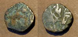 | Description / विवरण | Descrpn./Obv Recumbent bull facing left, wearing jhula (saddle cloth). Above, legend in Sarada script Sri Samantadeva (in cursive letters, mostly truncated and seen partially or off the flan). Descrpn./Rev Rider with lance on caparisoned horse facing right. |