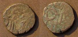 | Description / विवरण | Descrpn./Obv Recumbent bull facing left, wearing jhula (saddle cloth). Above, legend in Sarada script Sri Samantadeva (in cursive letters, mostly truncated and seen partially or off the flan). Descrpn./Rev Rider with lance on caparisoned horse facing right. |