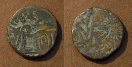 | Description / विवरण | Descrpn./Obv Recumbent bull facing left, wearing jhula (saddle cloth). Above, legend in Sarada script Sri Samantadeva (in cursive letters, mostly truncated and seen partially or off the flan). Descrpn./Rev Rider with lance on caparisoned horse facing right. |