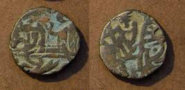 | Description / विवरण | Descrpn./Obv Recumbent bull facing left, wearing jhula (saddle cloth). Above, legend in Sarada script Sri Samantadeva (in cursive letters, mostly truncated and seen partially or off the flan). Descrpn./Rev Rider with lance on caparisoned horse facing right. |