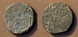 | Description / विवरण | Descrpn./Obv Recumbent bull facing left, wearing jhula (saddle cloth). Above, legend in Sarada script Sri Samantadeva (in cursive letters, mostly truncated and seen partially or off the flan). Descrpn./Rev Rider with lance on caparisoned horse facing right. |