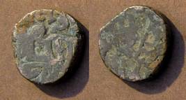 | Description / विवरण | Descrpn./Obv Recumbent bull facing left, wearing jhula (saddle cloth). Above, legend in Sarada script Sri Samantadeva (in cursive letters, mostly truncated and seen partially or off the flan). Descrpn./Rev Rider with lance on caparisoned horse facing right. |
