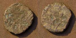 | Description / विवरण | Descrpn./Obv Recumbent bull facing left, wearing jhula (saddle cloth). Above, legend in Sarada script Sri Samantadeva (in cursive letters, mostly truncated and seen partially or off the flan). Descrpn./Rev Rider with lance on caparisoned horse facing right. |