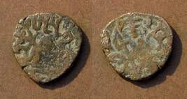 | Description / विवरण | Descrpn./Obv Recumbent bull facing left, wearing jhula (saddle cloth). Above, legend in Sarada script Sri Samantadeva (in cursive letters, mostly truncated and seen partially or off the flan). Descrpn./Rev Rider with lance on caparisoned horse facing right. |