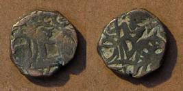 | Description / विवरण | Descrpn./Obv Recumbent bull facing left, wearing jhula (saddle cloth). Above, legend in Sarada script Sri Samantadeva (in cursive letters, mostly truncated and seen partially or off the flan). Descrpn./Rev Rider with lance on caparisoned horse facing right. |