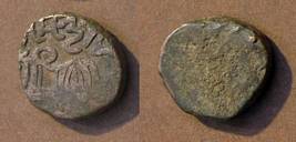 | Description / विवरण | Descrpn./Obv Recumbent bull facing left, wearing jhula (saddle cloth). Above, legend in Sarada script Sri Samantadeva (in cursive letters, mostly truncated and seen partially or off the flan). Descrpn./Rev Rider with lance on caparisoned horse facing right. |