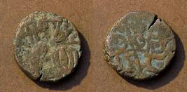 | Description / विवरण | Descrpn./Obv Recumbent bull facing left, wearing jhula (saddle cloth). Above, legend in Sarada script Sri Samantadeva (in cursive letters, mostly truncated and seen partially or off the flan). Descrpn./Rev Rider with lance on caparisoned horse facing right. |
