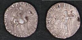| Description / विवरण | Descrpn./Obv Diademed king on horseback to r., wearing armour and holding spear; Greek legend, Basileos Basileon Megalou / Onunou. Descrpn./Rev Zeus radiate, standing facing, holding long scepter in left hand and thunderbolt in outstretched hand; Kharoshthi legend, Spalahoraputrasa dhramikasa / Spalagadamasa |