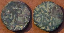 | Description / विवरण | Descrpn./Obv Recumbent bull facing left, wearing jhula (saddle cloth). Above, legend in Sarada script Sri Samantadeva (in cursive letters, mostly truncated and seen partially or off the flan). Descrpn./Rev Rider with lance on caparisoned horse facing right. |