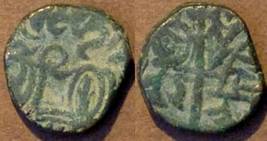 | Description / विवरण | Descrpn./Obv Recumbent bull facing left, wearing jhula (saddle cloth). Above, legend in Sarada script Sri Samantadeva (in cursive letters, mostly truncated and seen partially or off the flan). Descrpn./Rev Rider with lance on caparisoned horse facing right. |