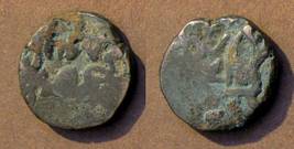 | Description / विवरण | Descrpn./Obv Recumbent bull facing left, wearing jhula (saddle cloth). Above, legend in Sarada script Sri Samantadeva (in cursive letters, mostly truncated and seen partially or off the flan). Descrpn./Rev Rider with lance on caparisoned horse facing right. |
