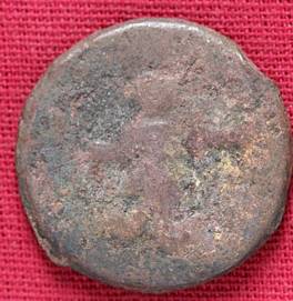 | Description / विवरण | The shape of the Coin is circular. Obverse -The figure of Kushana type king is completely Blurred. Reverse -Probably, a standing figure of MAO or Moon-God with right arm extended and the crescent above the left shoulder. The left arm is not visible. |
