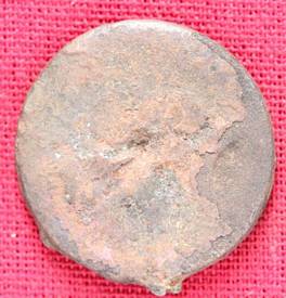 | Description / विवरण | The shape of the Coin is circular. Obverse -A Kushana type king standing with his right arm curved upwards and left arm curved downwards. Reverse -Probably, a standing figure of MAO or Moon-God with right arm curved upwards and the crescent above the left shoulder. The left arm is not visible |