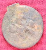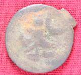 | Description / विवरण | The shape of the Coin is circular. Obverse -A Kushana type king standing with his right arm curved upwards and left arm curved downwards. Reverse -Probably, a standing figure of MAO or Moon-God with right arm curved upwards and the crescent above the left shoulder. The left arm is not visible |