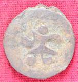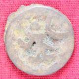 | Description / विवरण | The shape of the Coin is circular. Obverse -A Kushana type king standing with his right arm curved upwards and left arm curved downwards. Reverse -Probably, a standing figure of MAO or Moon-God with right arm curved upwards and the crescent above the left shoulder. The left arm is not visible. |