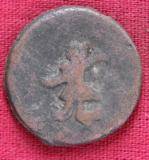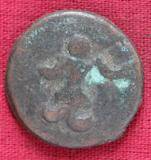 | Description / विवरण | The shape of the Coin is circular. Obverse -A Kushana type king standing with his right arm curved upwards and left arm curved downwards. Reverse -Probably, a standing figure of MAO or Moon-God with right arm curved upwards and the crescent above the left shoulder. The left arm is not visible |