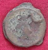 | Description / विवरण | The shape of the Coin is circular. Obverse -A Kushana type king standing with his right arm extended and left arm curved outs traced. Reverse -Probably, a standing figure of MAO or Moon-God with right arm curved upwards and the crescent above the left shoulder. The left arm is not visible. |