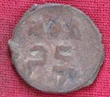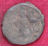 | Description / विवरण | The shape of the Coin is circular. Obverse -A Kushana type king standing with his right arm outstretched and left arm extended. Reverse -Probably, a standing figure of MAO or Moon-God with right arm outstretched and left arm extended. The crescent above the left shoulder. |