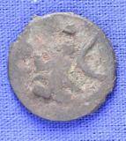| Description / विवरण | The shape of the coin is circular. Obverse Kushana type king, standing with his right hand curved upwards and his left arm extended. Reverse Probably the figure MAO or Moon-God with his right arm curved upwards and the crescent above the left shoulder. |