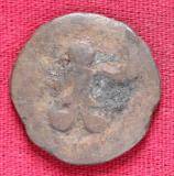 | Description / विवरण | The shape of the coin is circular. Obverse Kushana type king, standing with his right hand curved upwards and his left arm extended. Reverse Probably the figure MAO or Moon-God with his right arm curved upwards and the crescent above the left shoulder. |