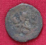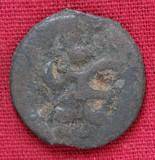 | Description / विवरण | The shape of the coin is circular. Obverse Kushana type king, standing with his right hand curved upwards and his left arm extended. Reverse Probably the figure MAO or Moon-God with his right arm curved upwards and the crescent above the left shoulder. |