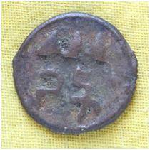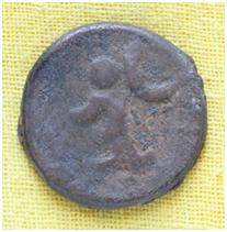 | Description / विवरण | The Shape of the Coin is Circular. Obverse A Standing figure MAO or moon god, with extended left hand right hand ,left hand not visible, a crescent above the left shoulder.. Reverse script below the three hills or three conical objects. |