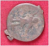 | Description / विवरण | The Shape of the Coin is Circular. Obverse A Standing figure of Kushana type king, with uplifted right hand and extended left hand. Reverse Probably a standing figure of MAO or Moon-God with uplifted right hand and extended left hand, the crescent above left shoulder, wears boot tunic.. |