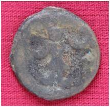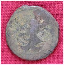 | Description / विवरण | The Shape of the Coin is Circular. Obverse A Standing figure of Kushana type king, with extended right hand and outstretched left hand, wears boots and tunic. Reverse Probably a standing figure of MAO or Moon-God with upwards curved right hand and left hand is not visible, the crescent above the left shoulder. |