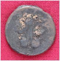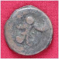 | Description / विवरण | The Shape of the Coin is Circular. Obverse A Standing figure of Kushana type king, with extended right hand and outstreched left hand, wears boots and tunic. Reverse Probably a standing figure of MAO or Moon-God with extended right hand and left hand is not visible, the crescent above the left shoulder. |