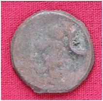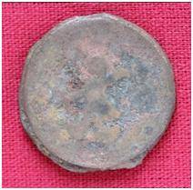 | Description / विवरण | The Shape of the Coin is Circular. Obverse A Standing figure of Kushana type king, with extended right hand and uplifted left hand, wears boots and tunic. Reverse Probably a standing figure of MAO or Moon-God with extended right hand and left hand is not visible, the crescent above the left shoulder. |