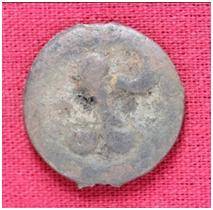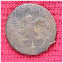 | Description / विवरण | The Shape of the Coin is Circular. Obverse A Standing figure of Kushana type king, with upwards curved right hand and outstretched left hand. Reverse Probably a standing figure of MAO or Moon-God, with the crescent above the left shoulder, both hands are not visible. |