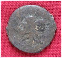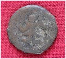 | Description / विवरण | The Shape of the Coin is Circular. Obverse A Standing figure of Kushana type king, with upwards curved right hand and uplifted left hand, wears boots and tunic. Reverse Probably a standing figure of MAO or Moon-God with upwards curved right hand and left hand is not visible, the crescent above the left shoulder. |
