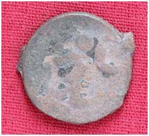 | Description / विवरण | The Shape of the Coin is Circular. Obverse Probably a standing figure of MAO or Moon-God with extended right hand and left hand is not visible, the crescent above the left shoulder. Reverse Legend below the three hills or three conical objects. |