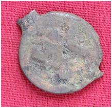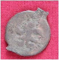 | Description / विवरण | The Shape of the Coin is Circular. Obverse A Standing figure of Kushana type king, with upwards curved right hand and downwards curved left hand, wears boots and tunic. Reverse Probably a standing figure of MAO or Moon-God with upwards curved right hand and left hand is not visible, the crescent above the left shoulder. |