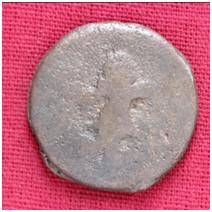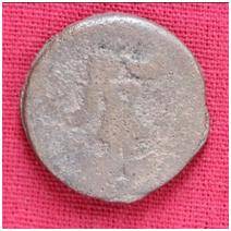 | Description / विवरण | The Shape of the Coin is Circular. Obverse A Standing figure of Kushana type king, with extended right hands, left hand not visible, wears boots and tunic. Reverse Probably a standing figure of MAO or Moon-God with slightly curved right hand and folded left hand, the crescent above the left shoulder. |